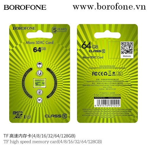 *Dung lượng thẻ và tốc độ đọc:Borofone 4G Class 6 (15MB / giây)