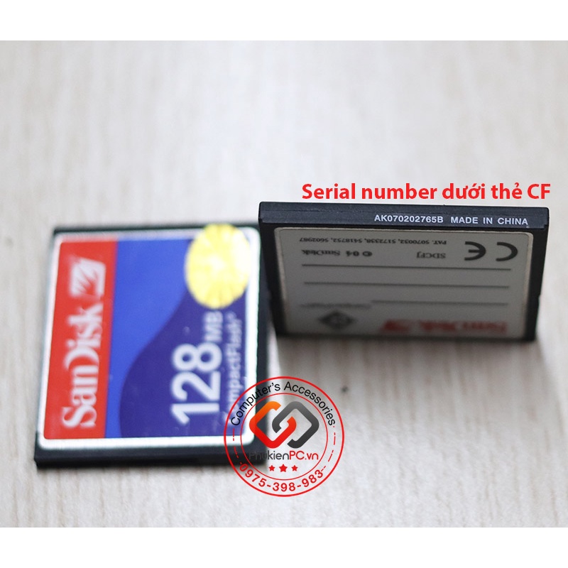 - Thương hiệu SanDisk chính hãng, bên dưới thẻ nhớ CF có in #SERIAL NUMBER rõ ràng (thẻ FAKE không có dòng chữ này, bạn lưu ý các shop khác đang bán thẻ CF hàng fake, renew. Tem mác, font chữ sử dụng không đồng đều, nét in mờ.)