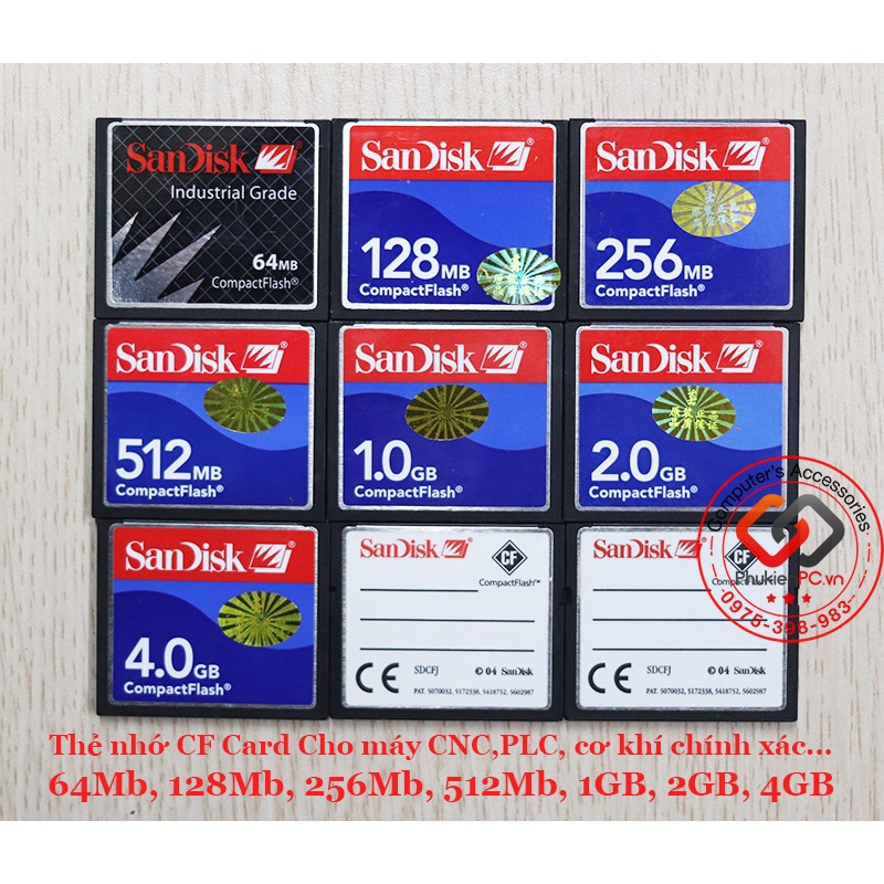 Điện Thoại & Phụ Kiện > Phụ kiện > Thẻ nhớ || Thẻ nhớ CF Card SanDisk 64mb 128mb 256mb 512mb 1gb 2gb 4gb chính hãng cho CNC, PLC, cơ khí chính xácCòn hàng