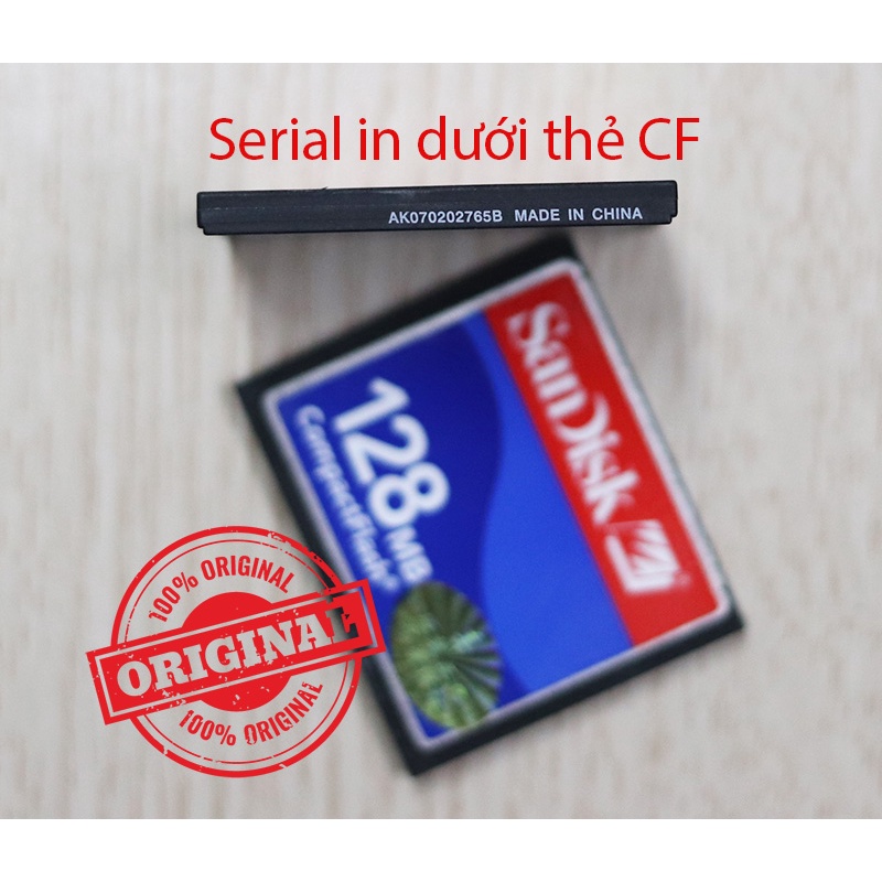 Thẻ nhớ CF chính hãng Sandisk có in serial bên dưới thẻ CompactFlash
