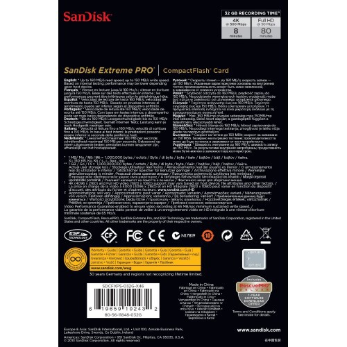 SanDisk Extreme Pro CompactFlash đi kèm với một năm sử dụng RescuePRO phần mềm khôi phục. Phần mềm RescuePRO làm cho nó dễ dàng để khôi phục lại hình ảnh hoặc video bị xóa và lưu chúng vào ổ cứng máy tính của bạn - thậm chí nếu đó là tập tin đã bị xóa vài tháng trước đây.
