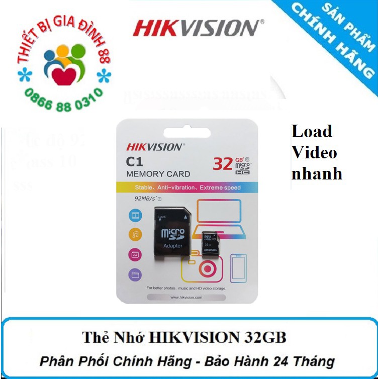 Điện Thoại & Phụ Kiện > Phụ kiện > Thẻ nhớ || Thẻ Nhớ chuyên dụng camera 32G 64G 128G HIKVISION CLASS 10 Chất Lượng Cao - Chính Hãng - BẢO HÀNH 24 THÁNGCòn hàng