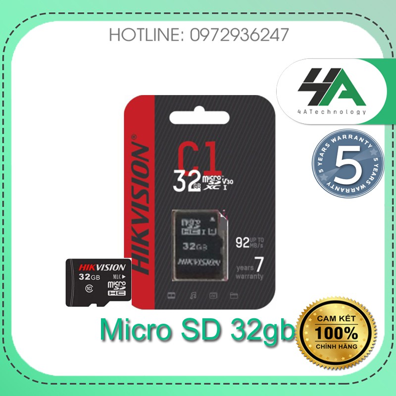 Điện Thoại & Phụ Kiện > Phụ kiện > Thẻ nhớ || Thẻ nhớ Hikvision 32G 32GB Micro SD, chuyên dụng cho camera, máy ảnh, điện thoại (Hàng chính hãng 5 năm Hikvision VN)Còn hàng