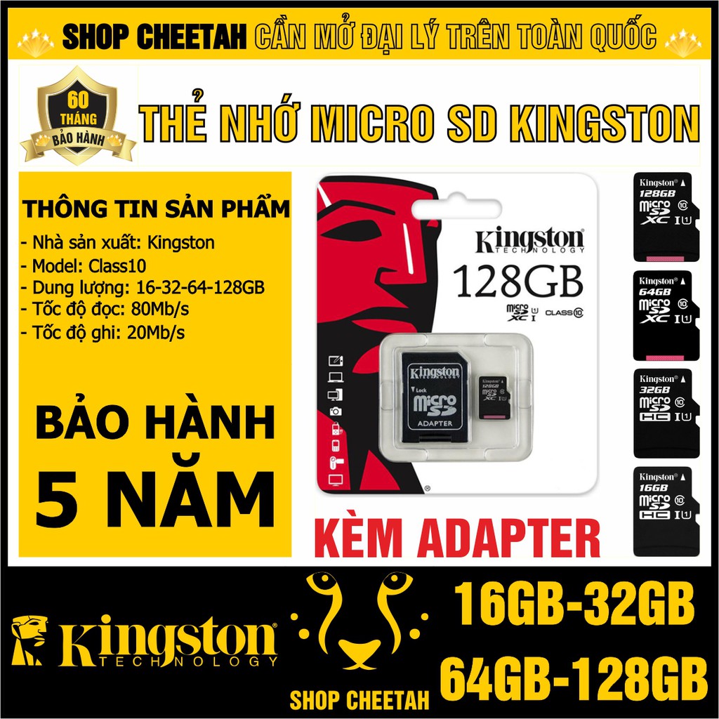 - Thẻ nhớ 16GB – 32GB – 64GB - 128GB MicroSD Kingston Class 10 sử dụng phân loại “class 10” tốc độ mới đảm bảo tốc độ truyền dữ liệu nhanh chóng nhằm đạt được hiệu suất tối ưu đối với các thiết bị sử dụng MicroSD.