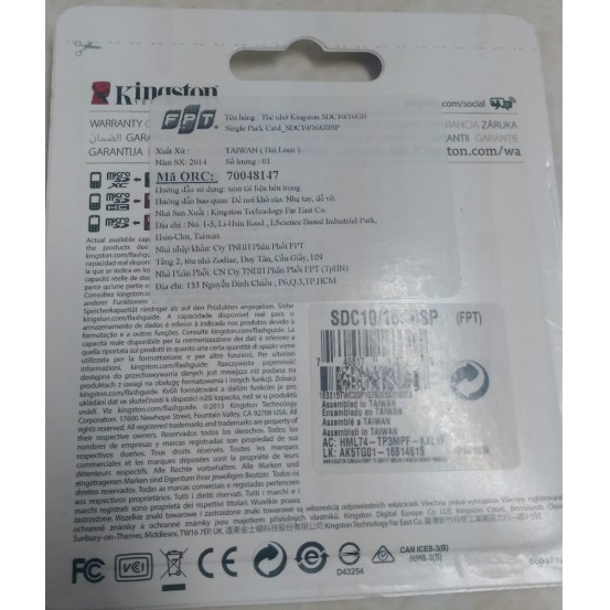 Giới thiệu Thẻ nhớ Kingston 16G Class 10