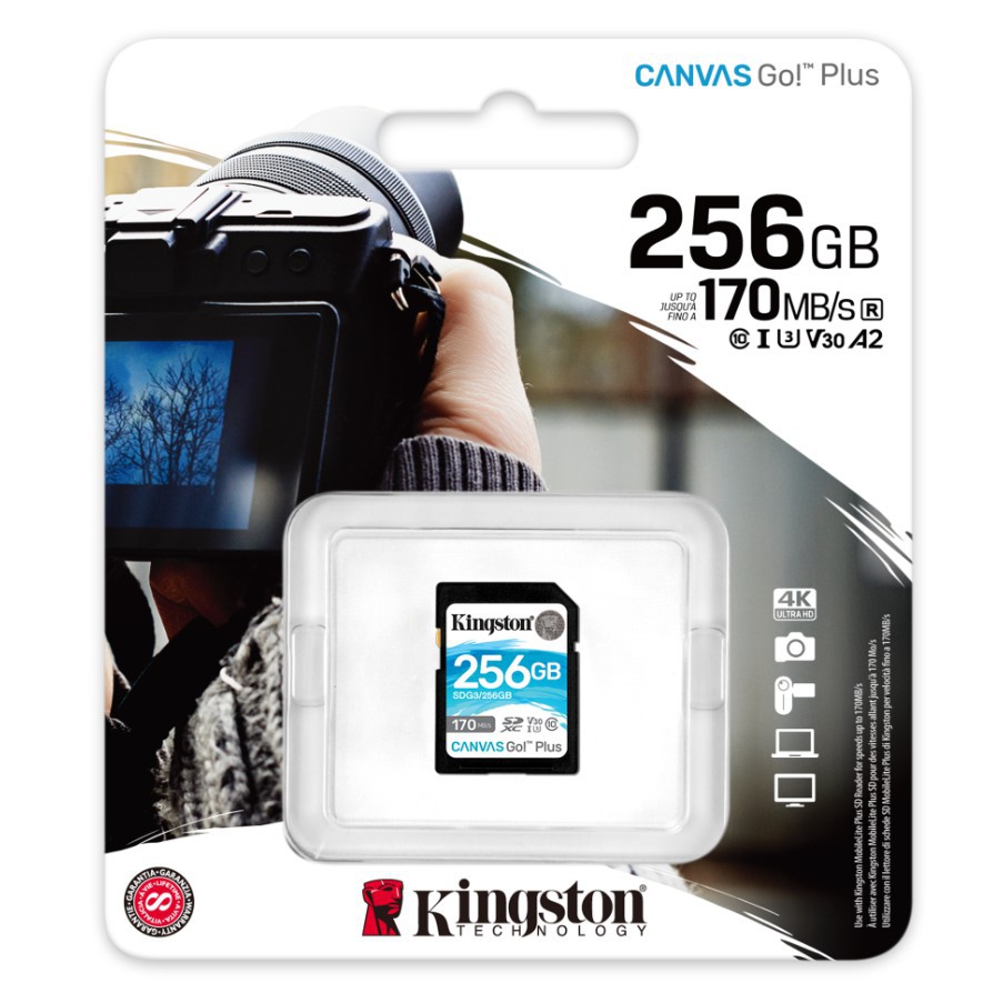 Thẻ nhớ Kingston Canvas Go Plus SD 256GB cho thiết bị di động Android, camera, flycam và sản xuất video 4K SDG3/256G