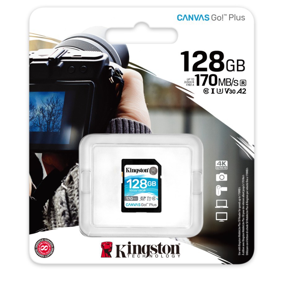 Thẻ nhớ Kingston Canvas Go Plus SD 128GB cho thiết bị di động Android, camera, flycam và sản xuất video 4K SDG3/128G