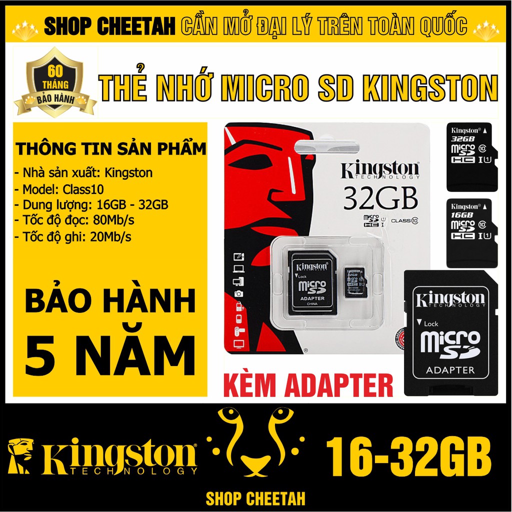 Thẻ nhớ Kingston MircoSD 16/32GB – Chính Hãng – Bảo hành 5 năm – Dùng cho Điện thoại – Máy ảnh – Camera – Kèm AdapterTHÔNG TIN SẢN PHẨM: