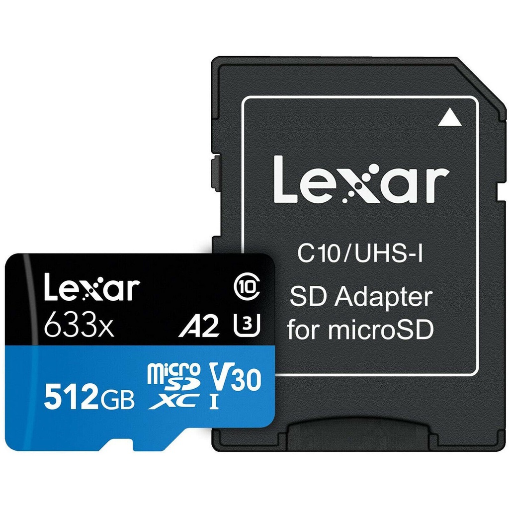 Thẻ nhớ Lexar 512GB Micro SD Card SDXC UHS-I High Performance 633x 100MB/s U3 4K w/adapter TF Memory Card