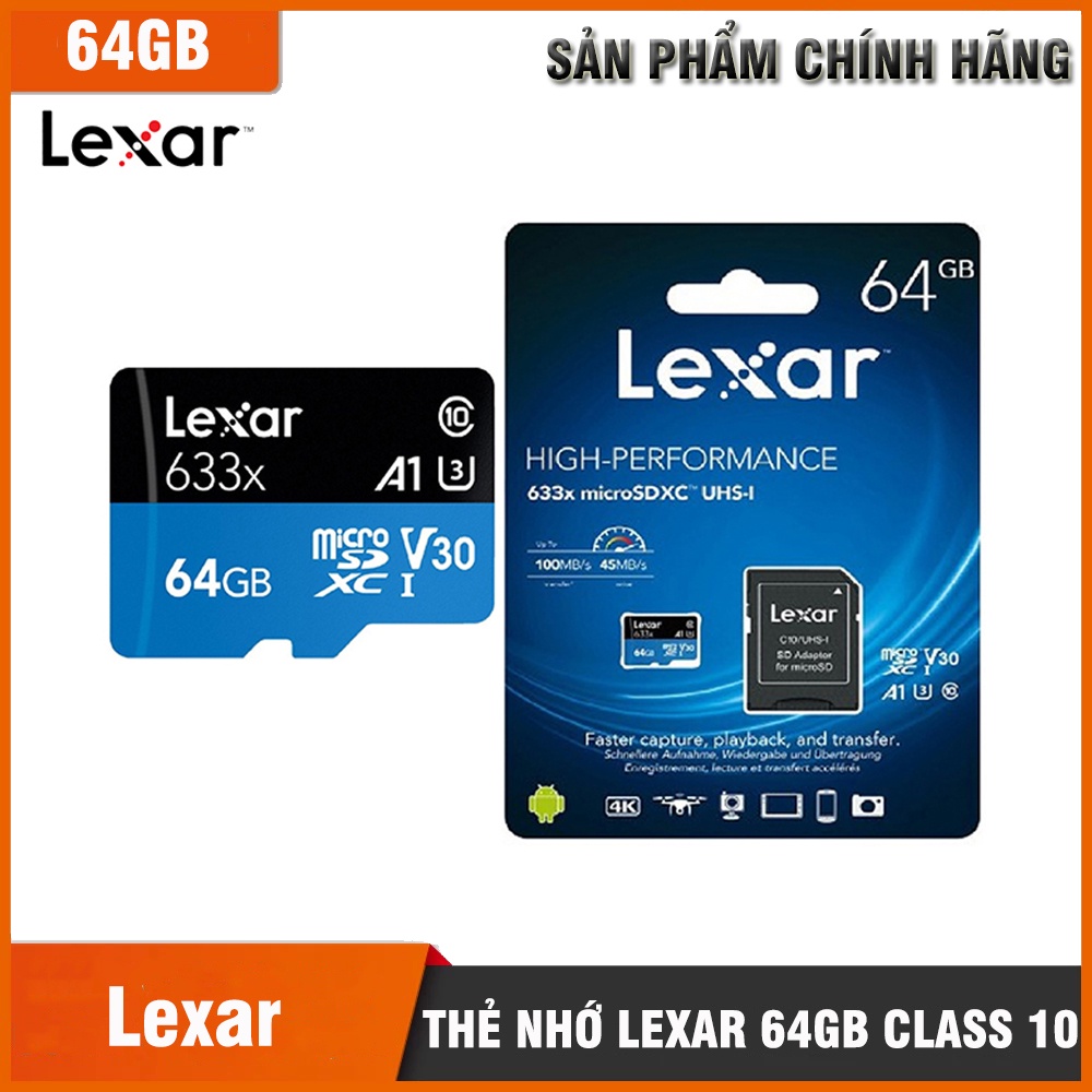 🎁Thẻ nhớ Lexar Chính hãng 32G/ 64gb Class 10 - U3- Dùng cho mọi camera WIFI Imou, Ezviz, Cam hành trình⚡️⚡️THÔNG TIN SẢN PHẨM:LEXAR 32GB/ 64GB CHÍNH HÃNG