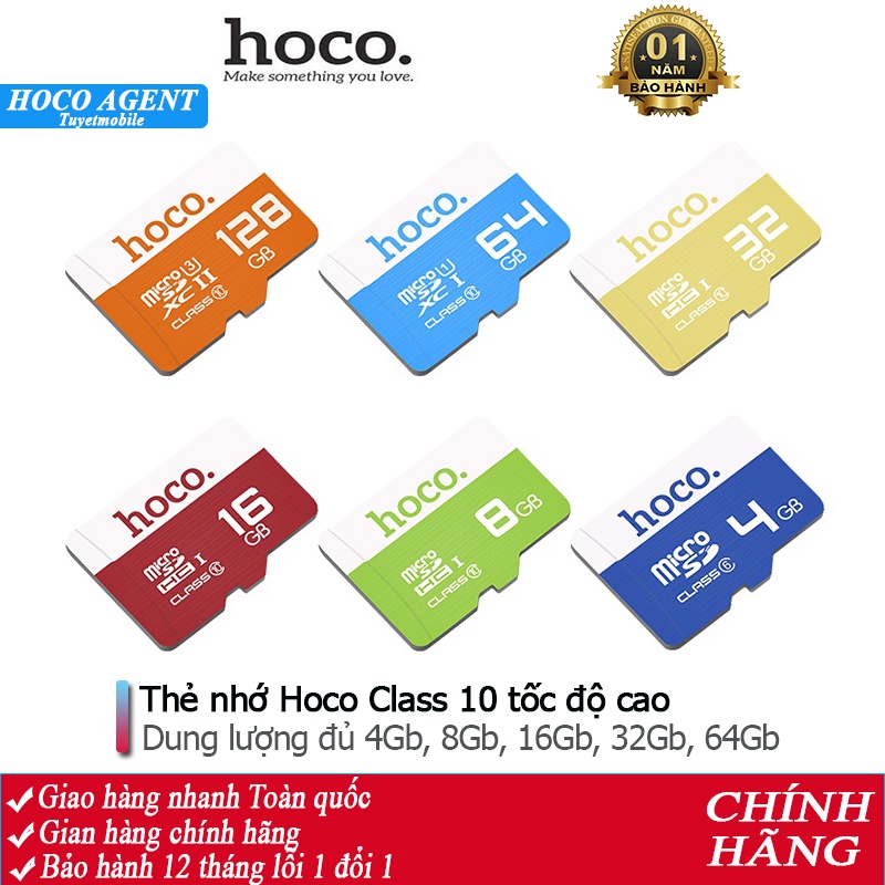 Thẻ nhớ lưu trữ Hoco đủ dung lượng 4Gb, 8Gb, 16Gb, 32Gb, 64Gb Class 10 truyền dữ liệu nhanh - Chính hãngThương hiệu: Hoco