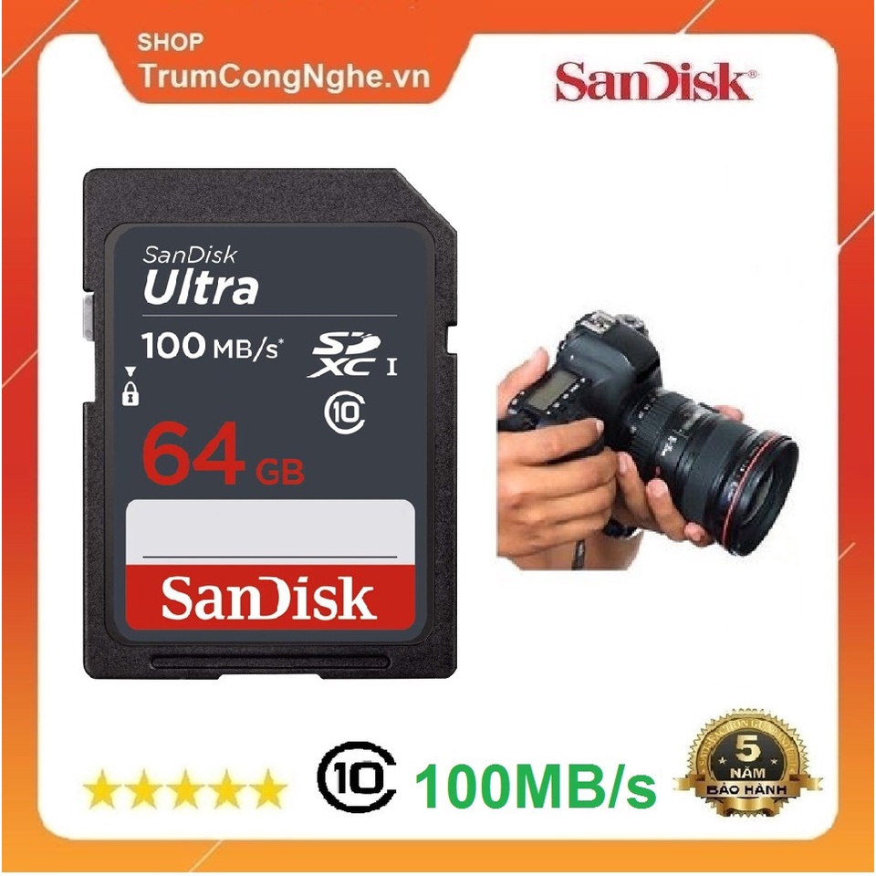 Giới thiệu Thẻ nhớ Máy Ảnh SD 64GB Sandisk Ultra Class 10 UHS-I upto 100MB/s (Xám)