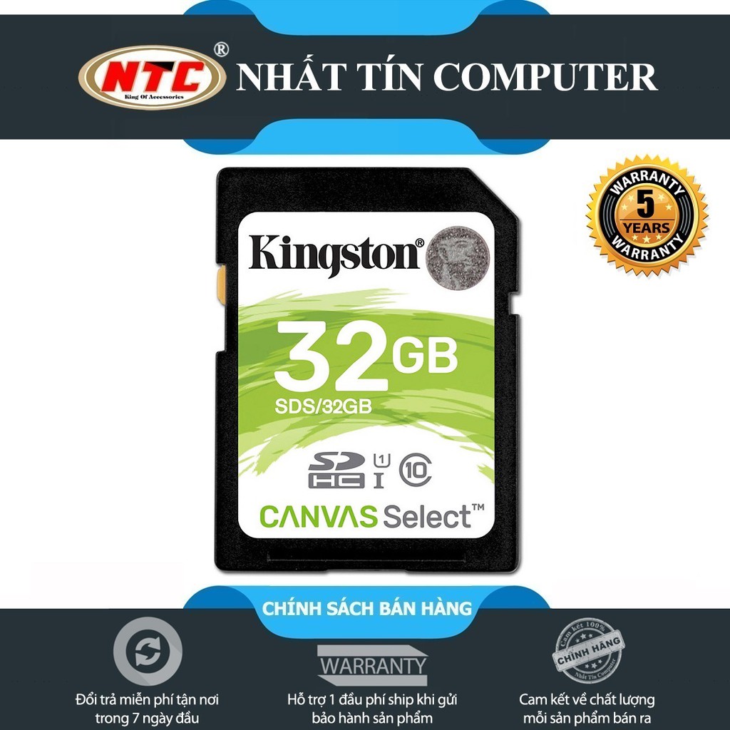 Điện Thoại & Phụ Kiện > Phụ kiện > Thẻ nhớ || Thẻ nhớ Máy Ảnh SDHC Kingston 32GB UHS-I U1 80MB/s - CANVAS Select (Trắng)Còn hàng