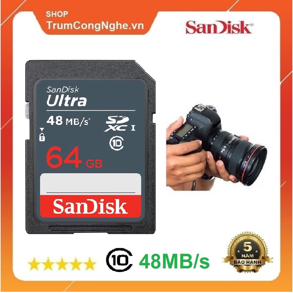 Thẻ nhớ Máy Ảnh SDXC 64GB Sandisk Ultra 48MB/S Class 10 Tốc độ cao