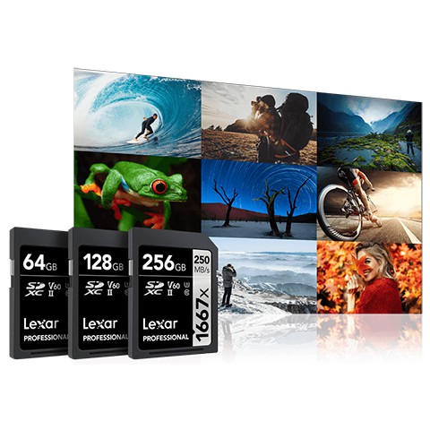 Với sự phát triển HD, 3D, và khả năng video 4K, bạn cần có một không gian lưu trữ đáp ứng cho nhu cầu của bạn, và các tùy chọn dung lượng cao để giữ cho bạn chụp lâu hơn mà không cần thay đổi thẻ. Thẻ nhớ SD Lexar Professional 1667x có nhiều gói dung lượng, cung cấp cho bạn với các tùy chọn dung lượng lớn lên đến 256 GB.