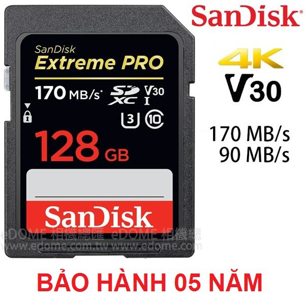 Thẻ Nhớ Máy Ảnh SDXC SanDisk Extreme Pro U3 V30 128GB 170Mb/s - Tốc độ siêu cao