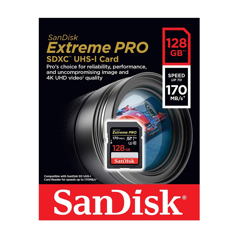 Thẻ nhớ SDXC SanDisk Extreme Pro U3 V30 1133x 128GB 170MB/s (Đen)Thông số: