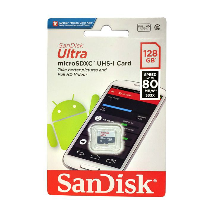 Trong thời đại công nghệ thông tin phát triển mạnh mẽ như hiện nay, việc lưu trữ những tài liệu, thông tin cá nhân và công việc trở nên hết sức quan trọng, nhưng không phải khi nào thiết bị cá nhân của bạn cũng đáp ứng được nhu cầu cấp thiết này. Việc sở hữu một chiếc thẻ nhớ như Micro-SD 128GB Sandisk Ultra C10 có dung lượng lưu trữ 128GB rất cơ động sẽ giúp bạn giải quyết được nhu cầu thiếu hụt bộ nhớ lưu trữ.