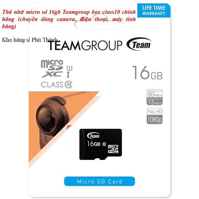 Thẻ nhớ micro sd 16gb teamgroup box class10 chính hãng (chuyên dùng camera, điện thoại, máy tính bảng)