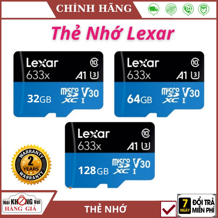 Thẻ nhớ Micro SD 32G / 64G / 128G lexar - tốc độ cao chuyện dụng cho Camera, Smartphone, loa đài, BH 2 năm 1 đổi 1