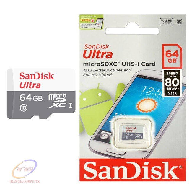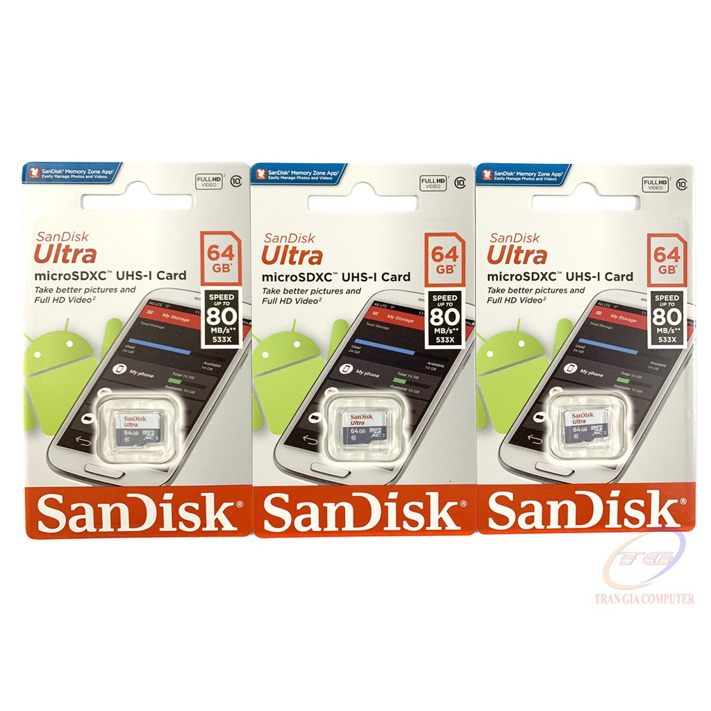 Điện Thoại & Phụ Kiện > Phụ kiện > Thẻ nhớ || Thẻ nhớ Micro-SD 64Gb Sandisk Ultra Class 10Còn hàng