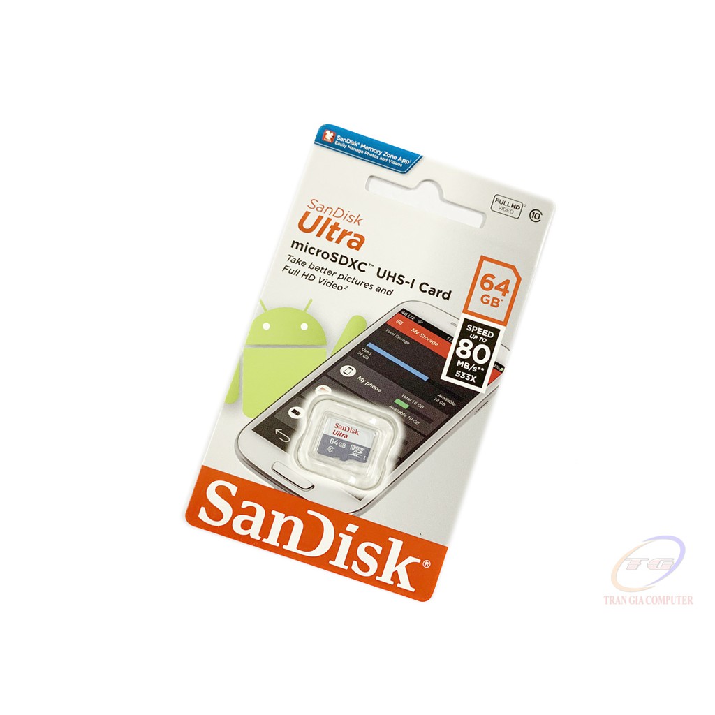 Hiện nay, bộ nhớ trong của những thiết bị smartphone hay máy tính bảng thường không thể đáp ứng đủ nhu cầu lưu trữ dữ liệu của người dùng. Thẻ nhớ Micro SD 64GB Sandisk C10 có thể giải quyết được tình trạng này. Với không gian được mở rộng thêm 64GB, bạn có thể thoải mái lưu trữ những hình ảnh, bài hát hoặc video ưa thích của mình.