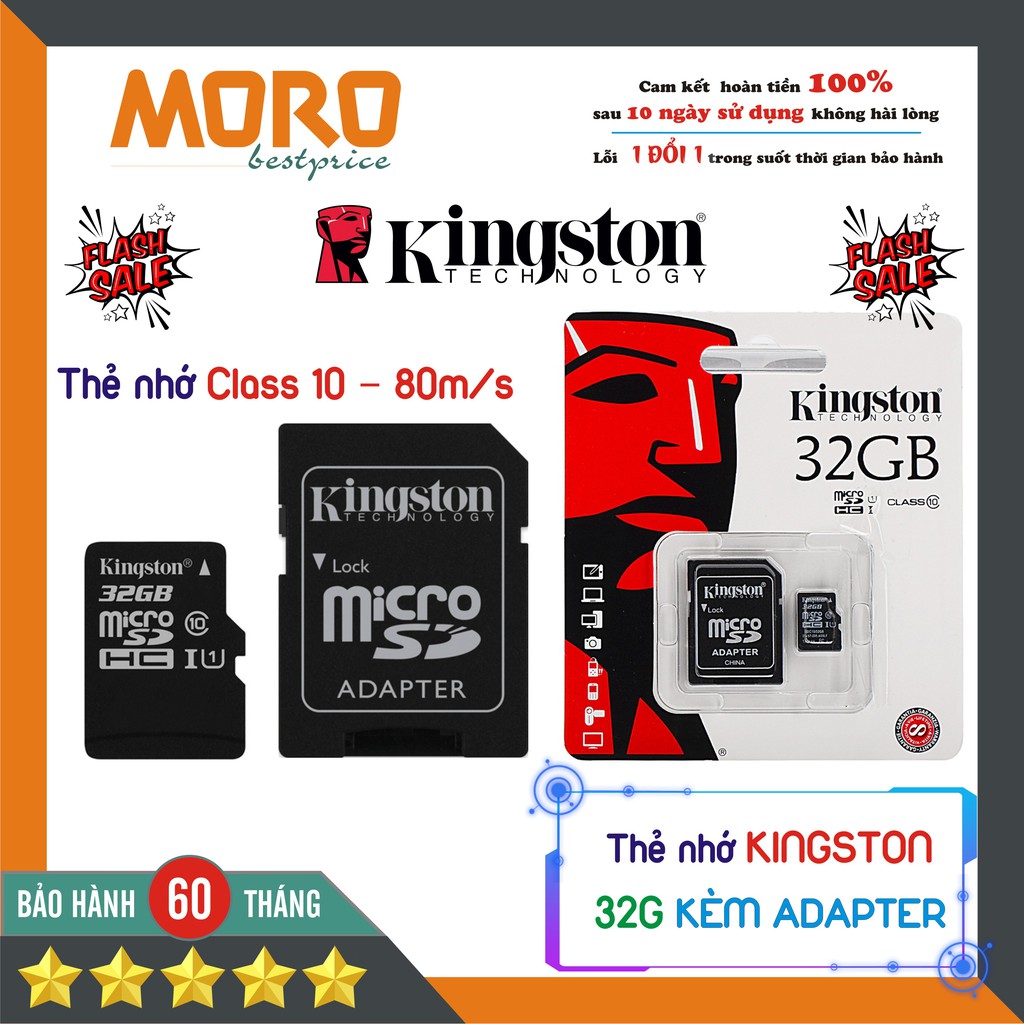 Thẻ nhớ micro SD KingSton Class 10 - 32G/64G/128G -- 80Mb/s - KÈM ADAPTER SD CARD
