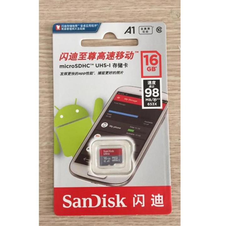 - Loại card: Thẻ nhớ micro SD san disk Ultra A1 16GB SDHC 98Mbs