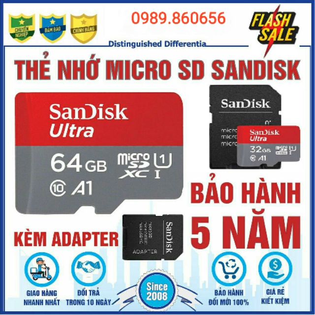 Điện Thoại & Phụ Kiện > Phụ kiện > Thẻ nhớ || Thẻ nhớ Micro SD SanDick Ultra 64GB/32GB chuyên dụng cho điện thoại, máy tính bảng, camera IPCòn hàng