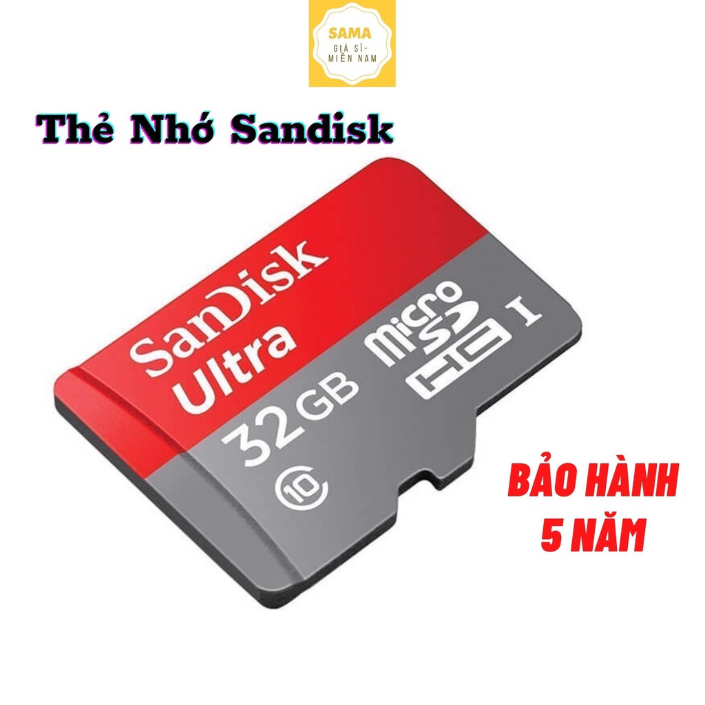 Điện Thoại & Phụ Kiện > Phụ kiện > Thẻ nhớ || Thẻ nhớ Micro SD Sandisk - BẢO HÀNH 5 NĂM - Dùng cho Điện Thoại, Loa Nhạc, Laptop, Máy Tính - 16GB/32GBCòn hàng