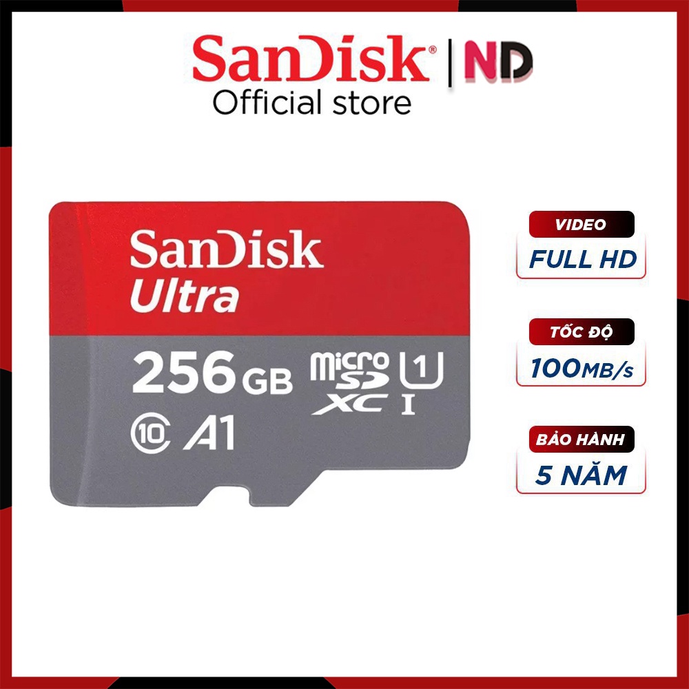 Điện Thoại & Phụ Kiện > Phụ kiện > Thẻ nhớ || Thẻ Nhớ Micro SD SanDisk Ultra 256GB 100MB/S Class10 - Hàng Chính HãngCòn hàng