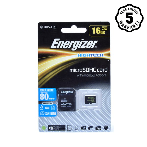 Thẻ nhớ Micro SDHC 16GB Energizer HT C10 U1 80Mb/s - FMDABH016AThông số kỹ thuật