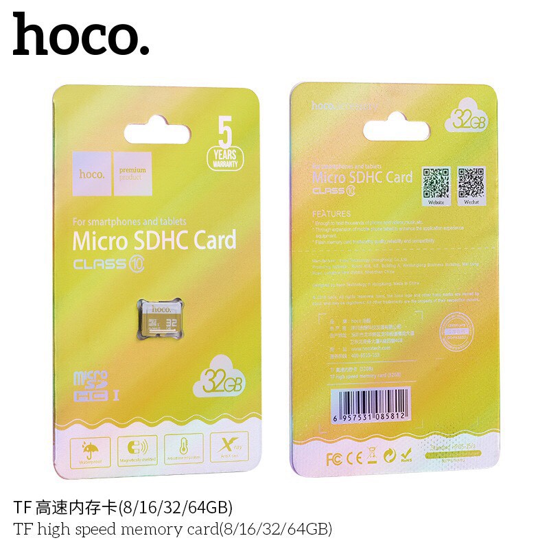 Thẻ nhớ MicroSDHC Hoco Class 10 có thể chống nước, nhiệt độ, chống sock,chống tia X-ray, giữ cho dữ liệu của bạn an toàn và được bảo hành 5 năm.