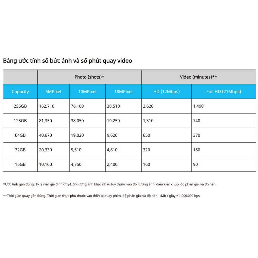 - Dung lượng Thẻ nhớ: 32/64/128GB