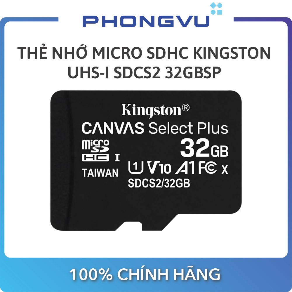 PHONG Vũ Official Store ShopeeThẻ nhớ micro SDHC Kingston 32GB Canvas Select 100R CL10 UHS-I SDCS2 32GBSP (Không Adapter) - Bảo hành 60 tháng