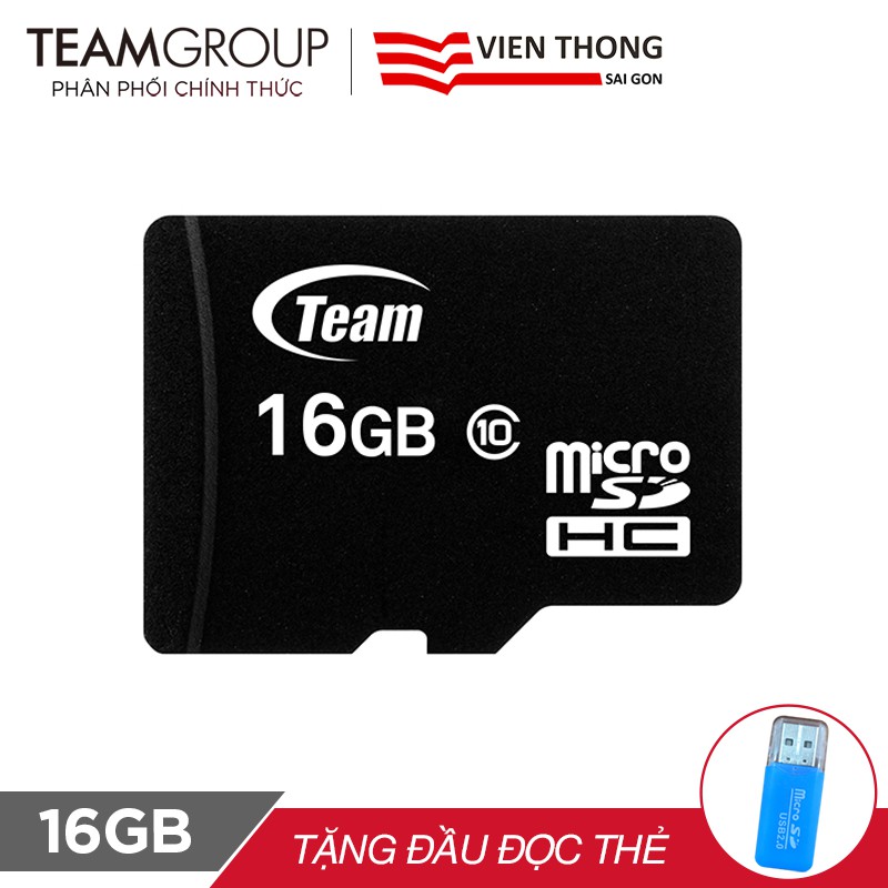 Thẻ nhớ micro SDHC Team 16GB class 10 (Đen) + Đầu đọc thẻ micro ngẫu nhiên - Hãng phân phối chính thức
