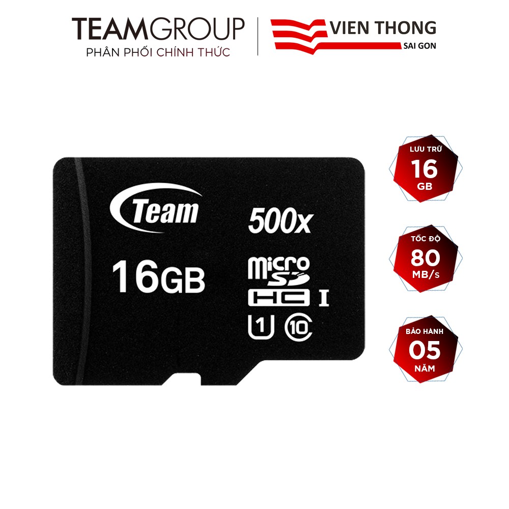 Điện Thoại & Phụ Kiện > Phụ kiện > Thẻ nhớ || Thẻ nhớ micro SDHC Team 16GB upto 80MB/s 500x (Đen) - Hãng phân phối chính thứcCòn hàng