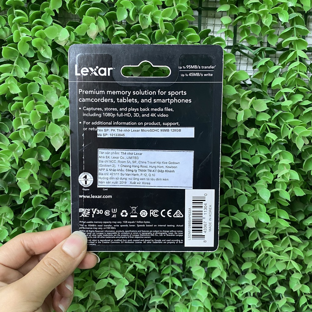 - Tốc độ: Class 10, UHS-I. Đọc: 95MB/s