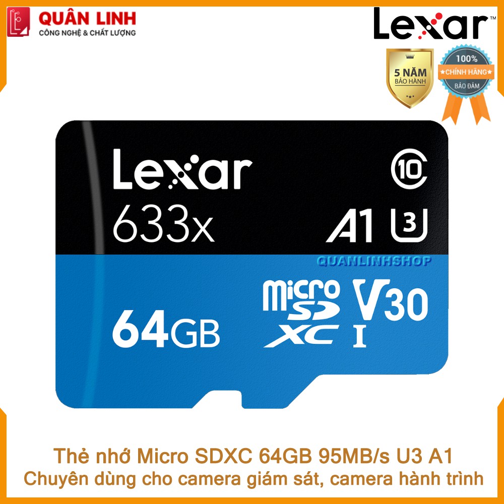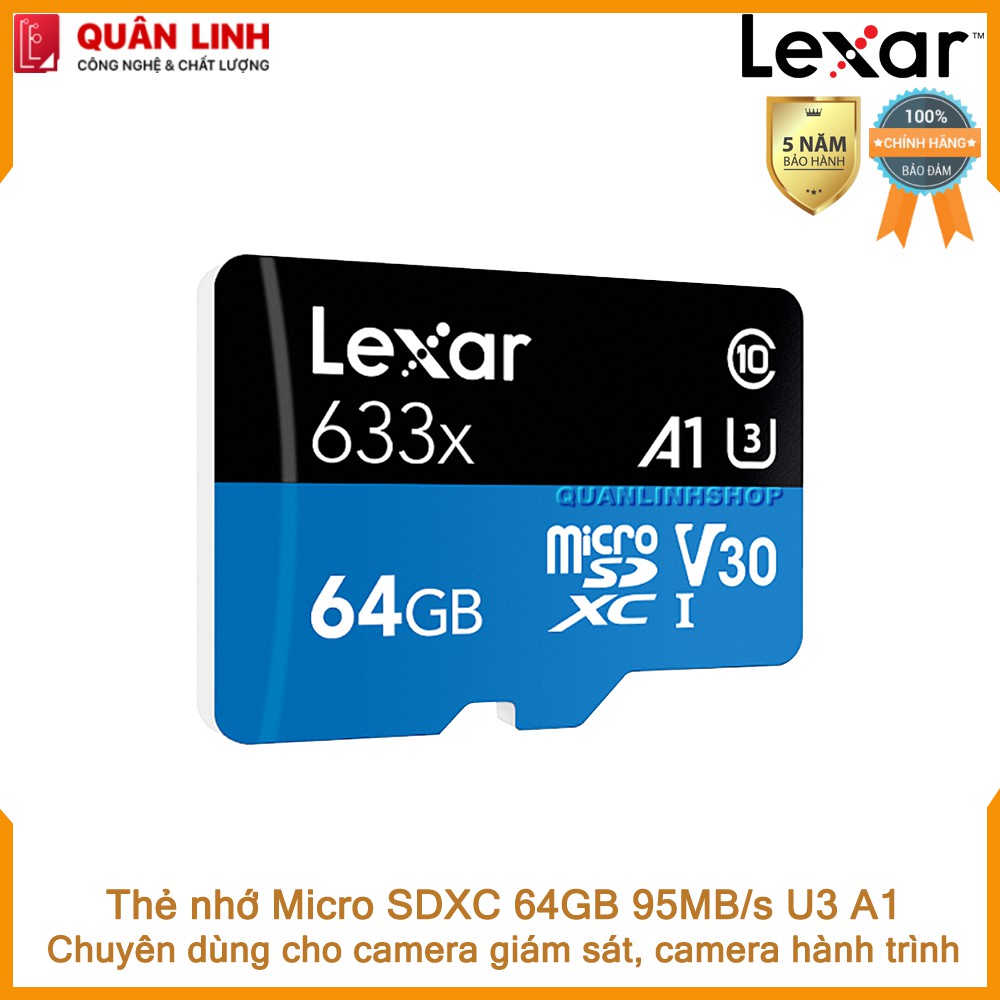 Điện Thoại & Phụ Kiện > Phụ kiện > Thẻ nhớ || Thẻ nhớ Micro SDXC 64GB A1 UHS-I V30 U3 95MB/s LexarCòn hàng