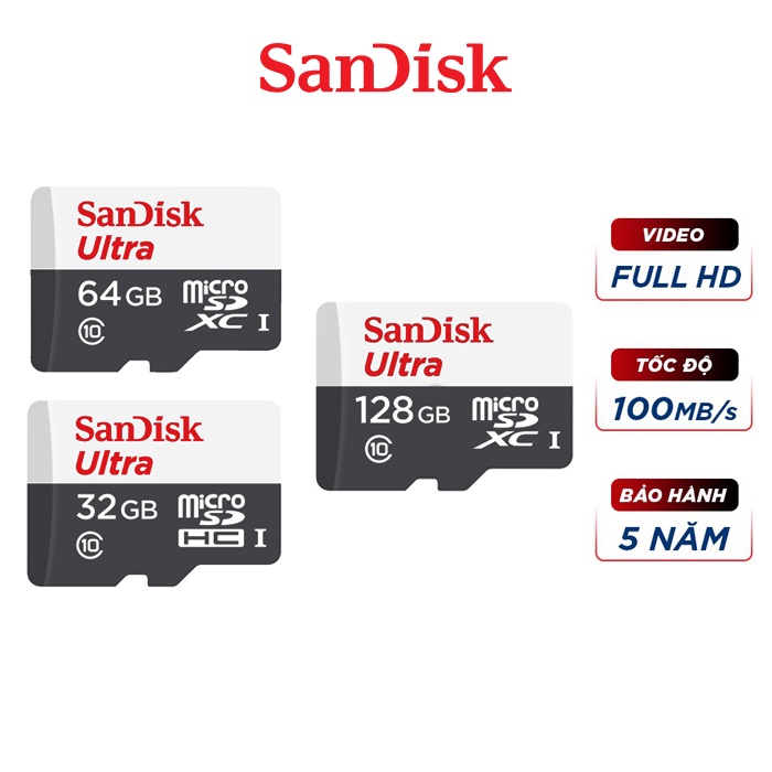 Điện Thoại & Phụ Kiện > Phụ kiện > Thẻ nhớ || Thẻ nhớ micro SDXC Sandisk 128GB upto 100MB/s 533X Ultra UHS-I - chính hãng bảo hành 5 nămCòn hàng