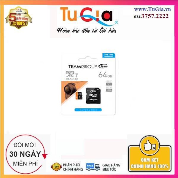 Điện Thoại & Phụ Kiện > Phụ kiện > Thẻ nhớ || Thẻ nhớ micro SDXC Team 64GB 500x 80MB/s 10 UHS-I kèm Adapter (Đen cam) - Hàng chính hãngCòn hàng