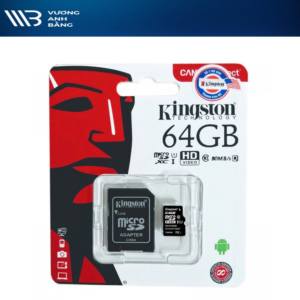 Đặc điểm nổi bậtThẻ nhớ 64GB MicroSD Kingston sử dụng chuẩn Class 10 cho khả năng sao chép dữ liệu vô cùng nhanh chóng nhưng vẫn đảm bảo được yếu tố bền bỉ, gọn nhẹ cần thiết.