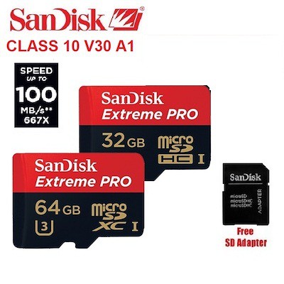Điện Thoại & Phụ Kiện > Phụ kiện > Thẻ nhớ || Thẻ nhớ MicroSD Extreme Pro 64GB 32GB Class10 U3 V30 4K 100MB/s + Kèm apdater - Tốc độ siêu caoCòn hàng