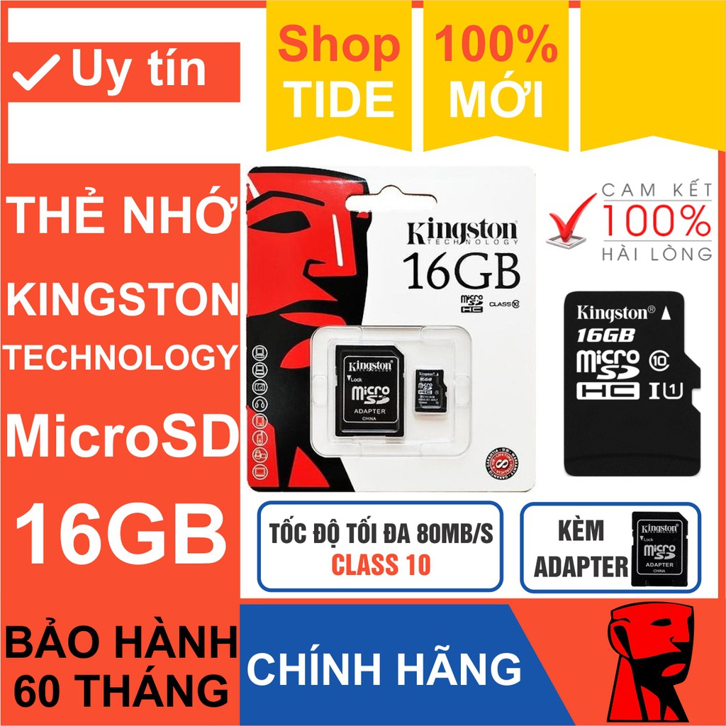 - Thẻ nhớ 16GB MicroSD Kingston Class 10 sử dụng phân loại “class 10” tốc độ mới đảm bảo tốc độ truyền dữ liệu nhanh chóng nhằm đạt được hiệu suất tối ưu đối với các thiết bị sử dụng MicroSD.