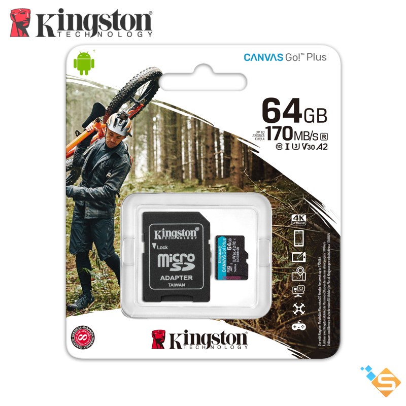 Canvas Go! của Kingston Thẻ microSD Plus dành cho những người yêu thích phiêu lưu luôn theo đuổi khoảnh khắc hoàn hảo nhất để ghi lại. Với tốc độ truyền vượt trội lên đến 170MB/giây1, thẻ Canvas Go! Thẻ microSD Plus tăng tốc lưu trình làm việc và hiệu suất để bạn có nhiều thời gian hơn cho việc sáng tạo trong chuyến phiêu lưu tiếp theo. Với hiệu năng tốc độ U3 và V30, bạn có thể quay video 4K Ultra HD ấn tượng mà không phải lo lắng về tốc độ chậm và rớt khung hình hoặc chụp những bức ảnh hành động nhanh liền mạch và nhất quán. Canvas Go! Thẻ microSD Plus hỗ trợ A2 Application Performance Class để ttăng tốc độ làm việc của bạn với hiệu năng ứng dụng nhanh hơn trên điện thoại thông minh và máy tính bảng. Có bộ chuyển đổi SD tùy chọn để tăng thêm tính linh hoạt khi sử dụng với các thiết bị tương thích với SD. Hãy xem thế giới như khung tranh của bạn và mang theo sự sáng tạo và cảm hứng trên đường đi với Canvas Go! Thẻ microSD Plus
