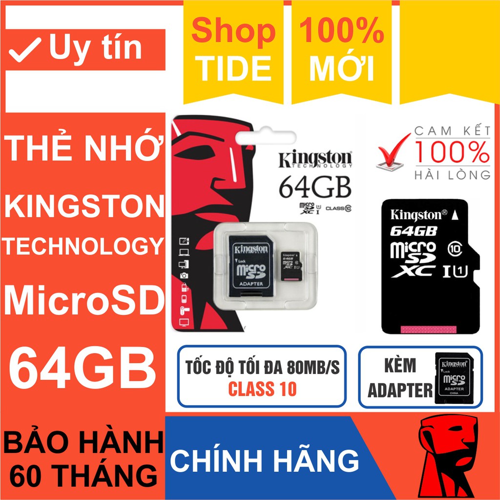 Thẻ nhớ MicroSD Kingston 64GB – MicroSD Class10 – Bảo hành 5 năm – CHÍNH HÃNG – Kèm Adapter