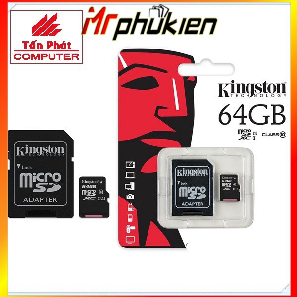-- - Thẻ nhớ Microsd 64GB Kingston Class 10 tăng khả năng lưu trữ dữ liệu thêm 64GB cho điện thoại di động , máy nghe nhạc, máy ảnh; cho bạn thoải mái lưu trữ nhạc, game, phim ảnh, dữ liệu.
