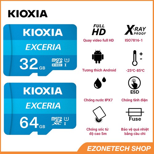 Điện Thoại & Phụ Kiện > Phụ kiện > Thẻ nhớ || Thẻ Nhớ MicroSD Kioxia Toshiba Exceria Tốc Độ 100Mb/s Class 10 Chính HãngCòn hàng