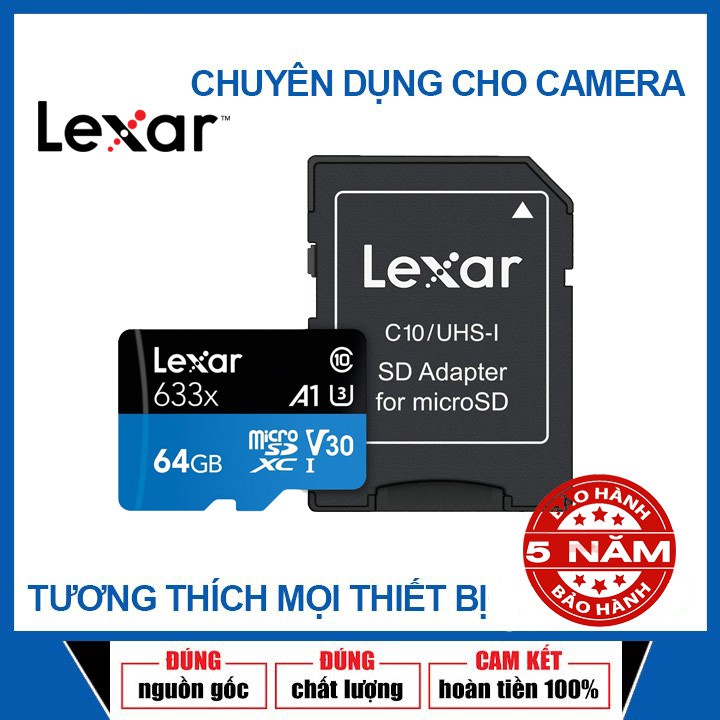 - Thẻ nguyên vỉ, Chính hãng Lexar, là dòng thẻ đi đầu trong tất cả các thương hiệu về độ bền, chống sốc điện và chống sốc nhiệt cực tốt, tốc độ truy xuất dữ liệu nhanh, đáp ứng tốt nhất cho các nhu cầu của mọi quý Khách hàng kể cả Quý Khách hàng khó tính nhất.
