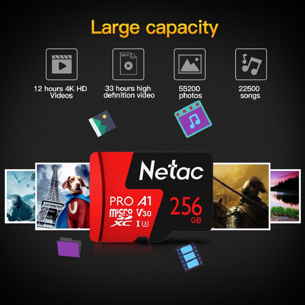 Thẻ nhớ Netac giúp mở rộng khả năng lưu trữ cho điện thoại, máy ảnh, máy nghe nhạc, camera wifi...🔷 Đặc điểm nổi bật: